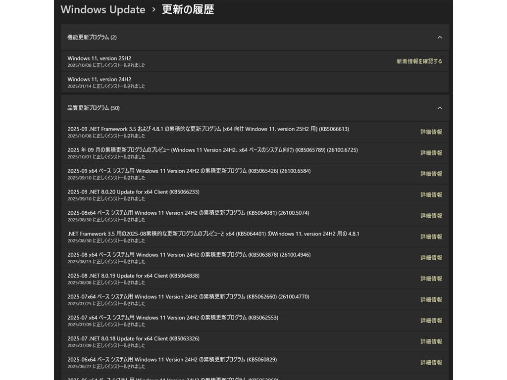 2025年WindowsUpdateでPCの具合がよろしくなくなりました。