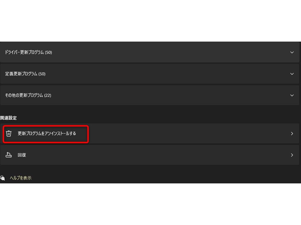 とっとと解決法「KB5065789」のアンインストール方法のやり方を書いていきます。